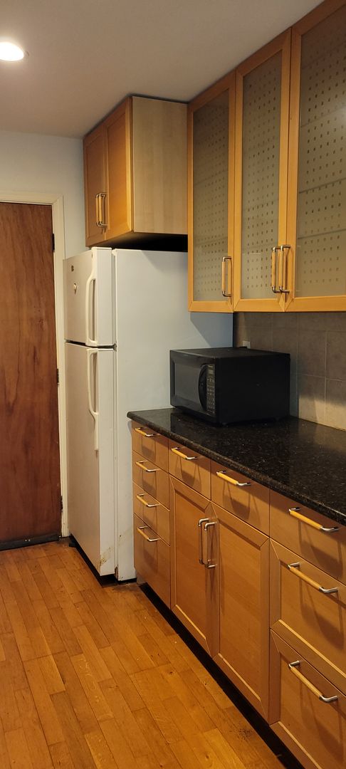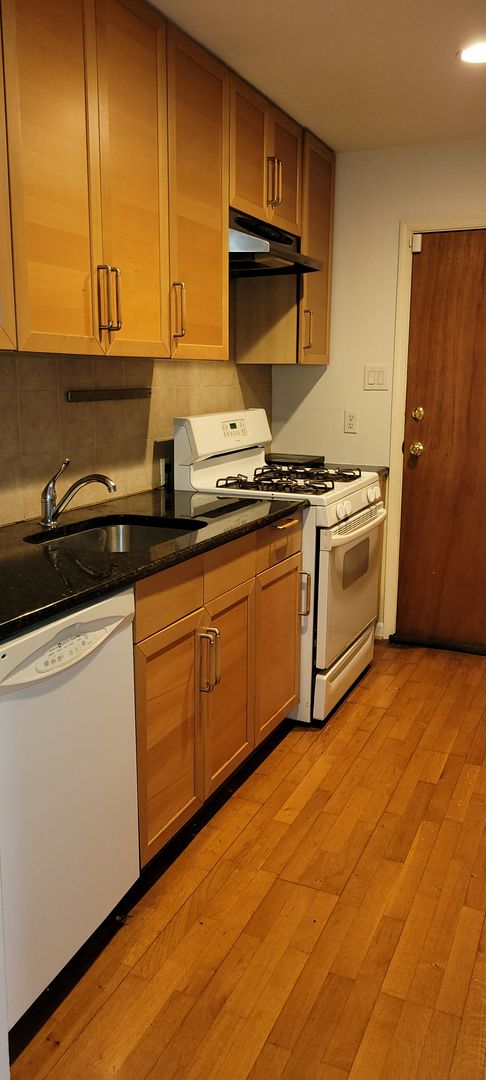 Beautiful and freshly updated 1 bedroom unit in a desirable community. The community offers off-street parking, green space and a swimming pool. The unit has a large living/dining area with laminate flooring and a huge window overlooking the pool. Modern kitchen with range, refrigerator and dishwasher, as well as ample cabinet and counter space, updated bathroom and a large bedroom. Secure building minutes from shopping and public transportation. First, last and security required to move in.