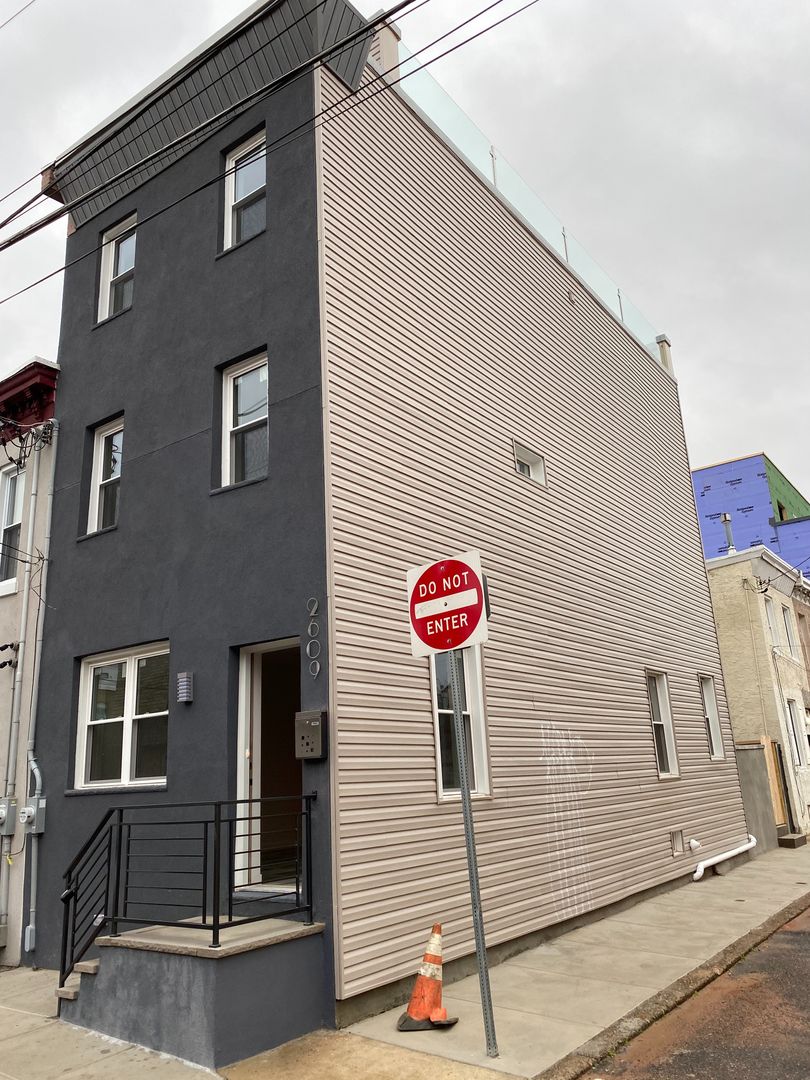 Move right into this stunning home, which was fully gutted and completely re-build from the new studs up. The property features a large living/dining area, custom kitchen with gorgeous cabinets, granite counters and back-splash as well as charcoal appliances. Additional features on the first floor include laminate flooring, separate laundry area with a powder room and access to a fenced, private rear yard. The second floor contains 2 bedrooms and a full bath and the 3rd floor is a private master bedrooms suite with a stunning tiled bath and plenty of closet space. As you continue up the stairs, you arrive at an expansive rooftop deck with a stunning view of the Center City skyline through the glass railing. No expense was spared in rehabbing this property. Upgrades include all new electrical, plumbing, dual zone HVAC, new roof and exterior siding. All new windows and brand new interior features. LEASE-PURCHASE OPTION AVAILABLE!