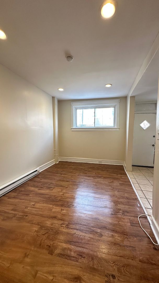 Lovely row featuring an open 1st floor plan with a large eat-in kitchen with modern cabinets, laminate flooring throughout, fresh paint, nice-size bedrooms with plenty of natural lights, updated, tiled bathroom and newer fixtures throughout. Desirably located on a great block. First, last and security required to move in.